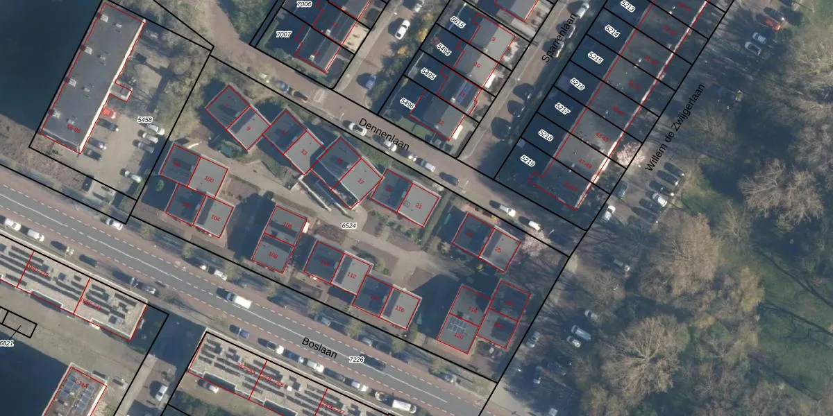 Het perceel waarop Dennenlaan 21 staat heeft een oppervlakte van 3815 m². Dit is een zeer groot perceel. De perceeloppervlakte wordt geregistreerd door het Kadaster. Gedetailleerde informatie over de maten van dit perceel kunt u vinden in het rapport Kadastrale kaart met maatvoering van Dennenlaan 21.