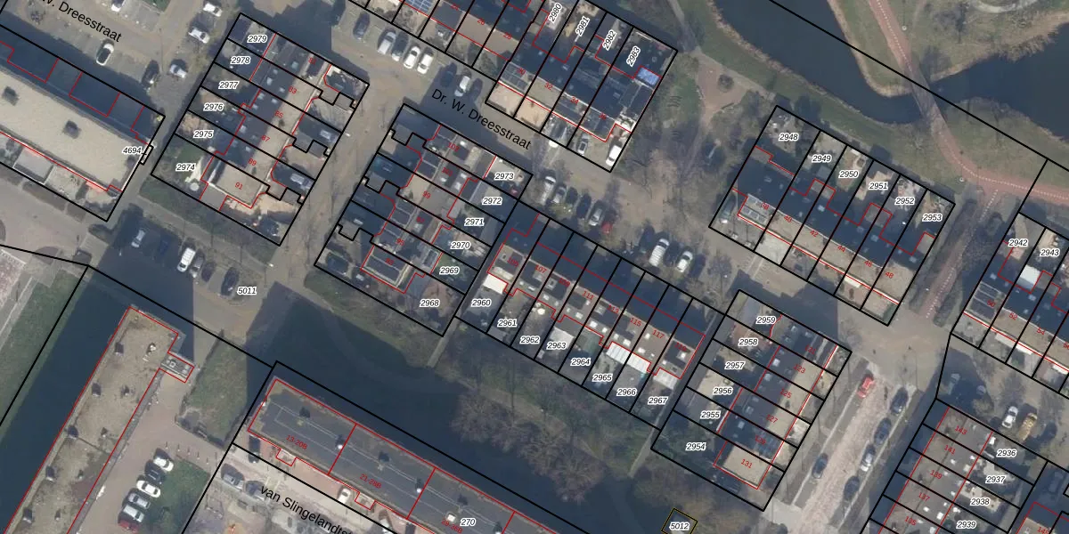 Gebruik de zoekbalk of klik op een perceel voor informatie over de adressen binnen dit perceel.