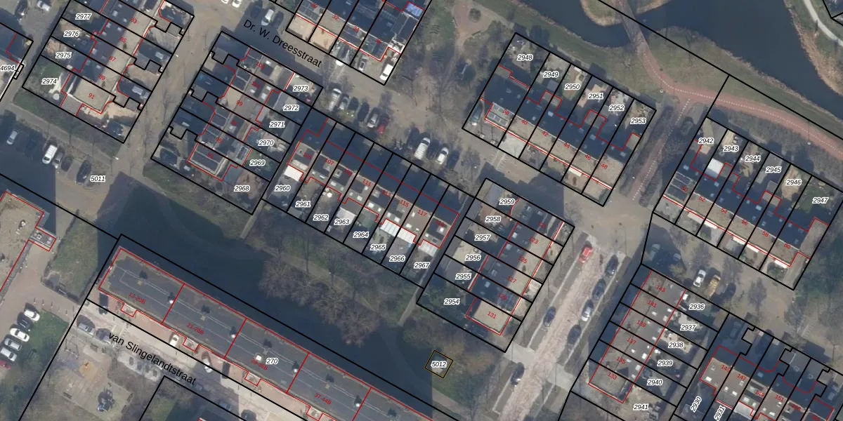 Het perceel waarop Dr. W. Dreesstraat 117 staat heeft een oppervlakte van 126 m². Dit is een middelgroot perceel. De perceeloppervlakte wordt geregistreerd door het Kadaster. Gedetailleerde informatie over de maten van dit perceel kunt u vinden in het rapport Kadastrale kaart met maatvoering van Dr. W. Dreesstraat 117.