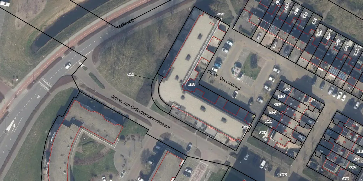 Het perceel waarop Dr. W. Dreesstraat 13 staat heeft een oppervlakte van 2005 m². Dit is een zeer groot perceel. De perceeloppervlakte wordt geregistreerd door het Kadaster. Gedetailleerde informatie over de maten van dit perceel kunt u vinden in het rapport Kadastrale kaart met maatvoering van Dr. W. Dreesstraat 13.