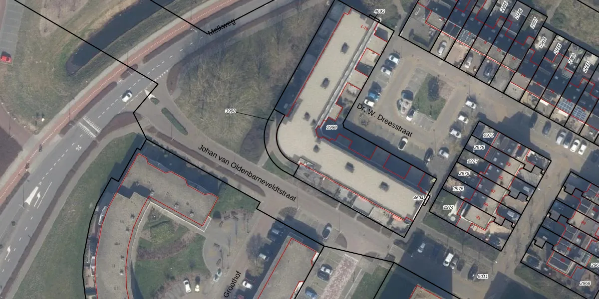 Het perceel waarop Dr. W. Dreesstraat 37 staat heeft een oppervlakte van 2005 m². Dit is een zeer groot perceel. De perceeloppervlakte wordt geregistreerd door het Kadaster. Gedetailleerde informatie over de maten van dit perceel kunt u vinden in het rapport Kadastrale kaart met maatvoering van Dr. W. Dreesstraat 37.