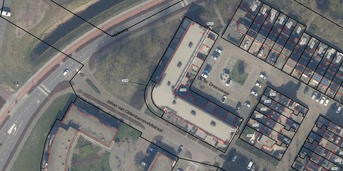Het perceel waarop Dr. W. Dreesstraat 49 staat heeft een oppervlakte van 2005 m². Dit is een zeer groot perceel. De perceeloppervlakte wordt geregistreerd door het Kadaster. Gedetailleerde informatie over de maten van dit perceel kunt u vinden in het rapport Kadastrale kaart met maatvoering van Dr. W. Dreesstraat 49.