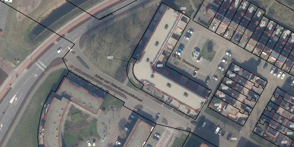 Het perceel waarop Dr. W. Dreesstraat 5 staat heeft een oppervlakte van 2005 m². Dit is een zeer groot perceel. De perceeloppervlakte wordt geregistreerd door het Kadaster. Gedetailleerde informatie over de maten van dit perceel kunt u vinden in het rapport Kadastrale kaart met maatvoering van Dr. W. Dreesstraat 5.