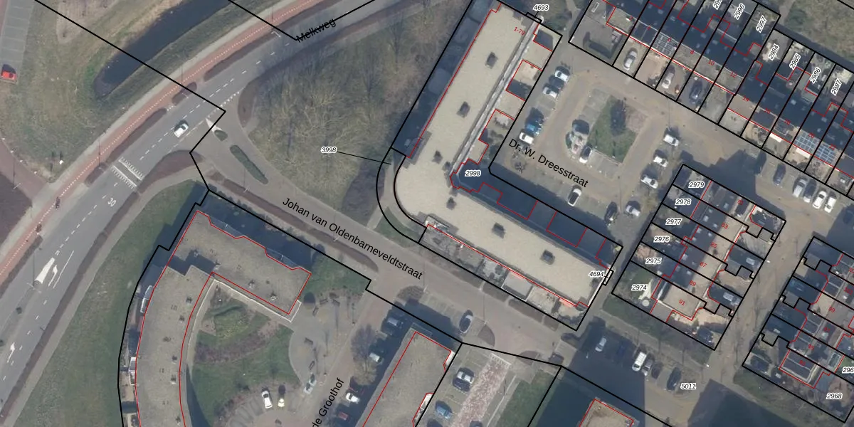 Het perceel waarop Dr. W. Dreesstraat 63 staat heeft een oppervlakte van 2005 m². Dit is een zeer groot perceel. De perceeloppervlakte wordt geregistreerd door het Kadaster. Gedetailleerde informatie over de maten van dit perceel kunt u vinden in het rapport Kadastrale kaart met maatvoering van Dr. W. Dreesstraat 63.