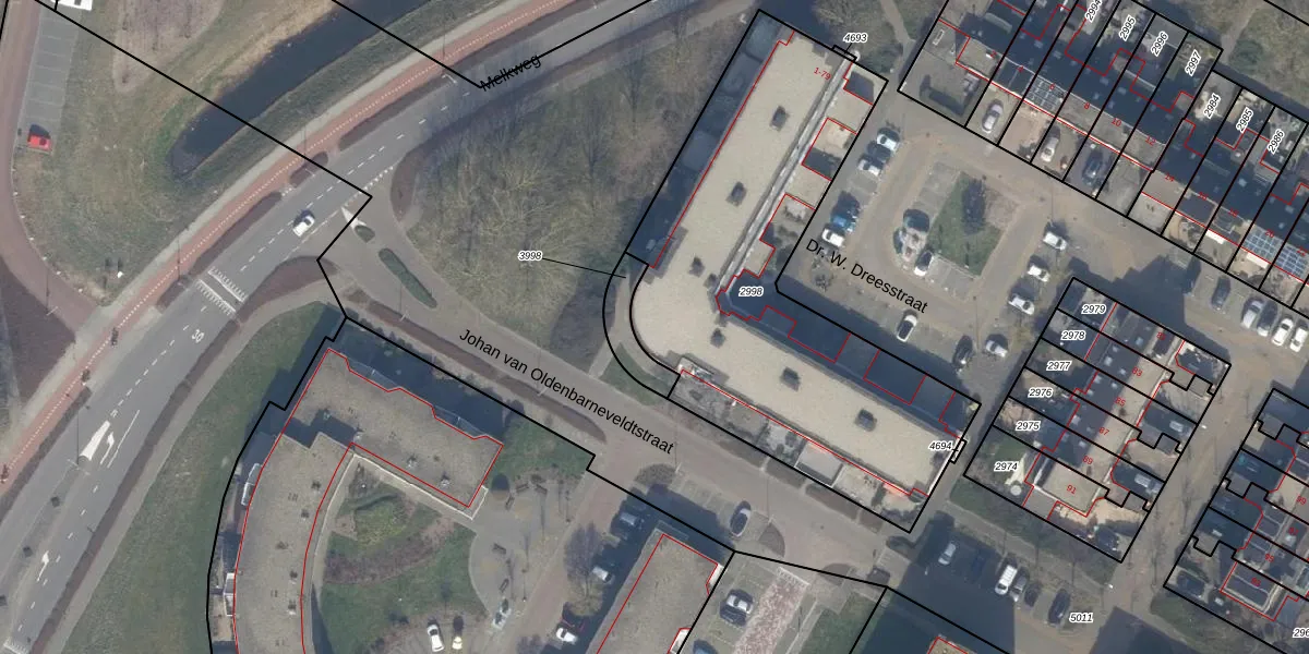 Het perceel waarop Dr. W. Dreesstraat 67 staat heeft een oppervlakte van 2005 m². Dit is een zeer groot perceel. De perceeloppervlakte wordt geregistreerd door het Kadaster. Gedetailleerde informatie over de maten van dit perceel kunt u vinden in het rapport Kadastrale kaart met maatvoering van Dr. W. Dreesstraat 67.