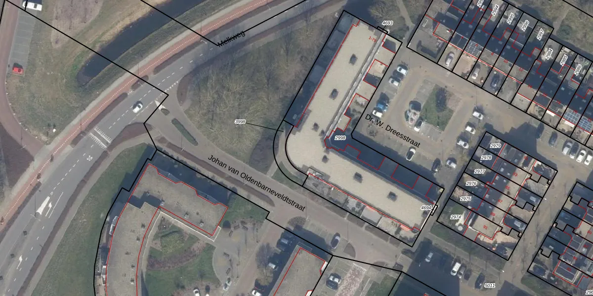 Het perceel waarop Dr. W. Dreesstraat 69 staat heeft een oppervlakte van 2005 m². Dit is een zeer groot perceel. De perceeloppervlakte wordt geregistreerd door het Kadaster. Gedetailleerde informatie over de maten van dit perceel kunt u vinden in het rapport Kadastrale kaart met maatvoering van Dr. W. Dreesstraat 69.