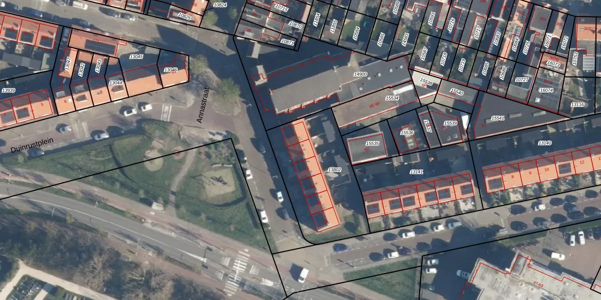 Het perceel waarop Duinrustplein 12 staat heeft een oppervlakte van 970 m². Dit is een groot perceel. De perceeloppervlakte wordt geregistreerd door het Kadaster. Gedetailleerde informatie over de maten van dit perceel kunt u vinden in het rapport Kadastrale kaart met maatvoering van Duinrustplein 12.
