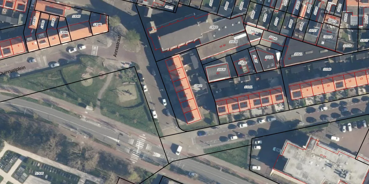 Het perceel waarop Duinrustplein 14 staat heeft een oppervlakte van 970 m². Dit is een groot perceel. De perceeloppervlakte wordt geregistreerd door het Kadaster. Gedetailleerde informatie over de maten van dit perceel kunt u vinden in het rapport Kadastrale kaart met maatvoering van Duinrustplein 14.