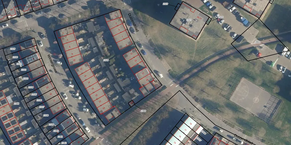 Het perceel waarop Duizendblad 17 staat heeft een oppervlakte van 3215 m². Dit is een zeer groot perceel. De perceeloppervlakte wordt geregistreerd door het Kadaster. Gedetailleerde informatie over de maten van dit perceel kunt u vinden in het rapport Kadastrale kaart met maatvoering van Duizendblad 17.