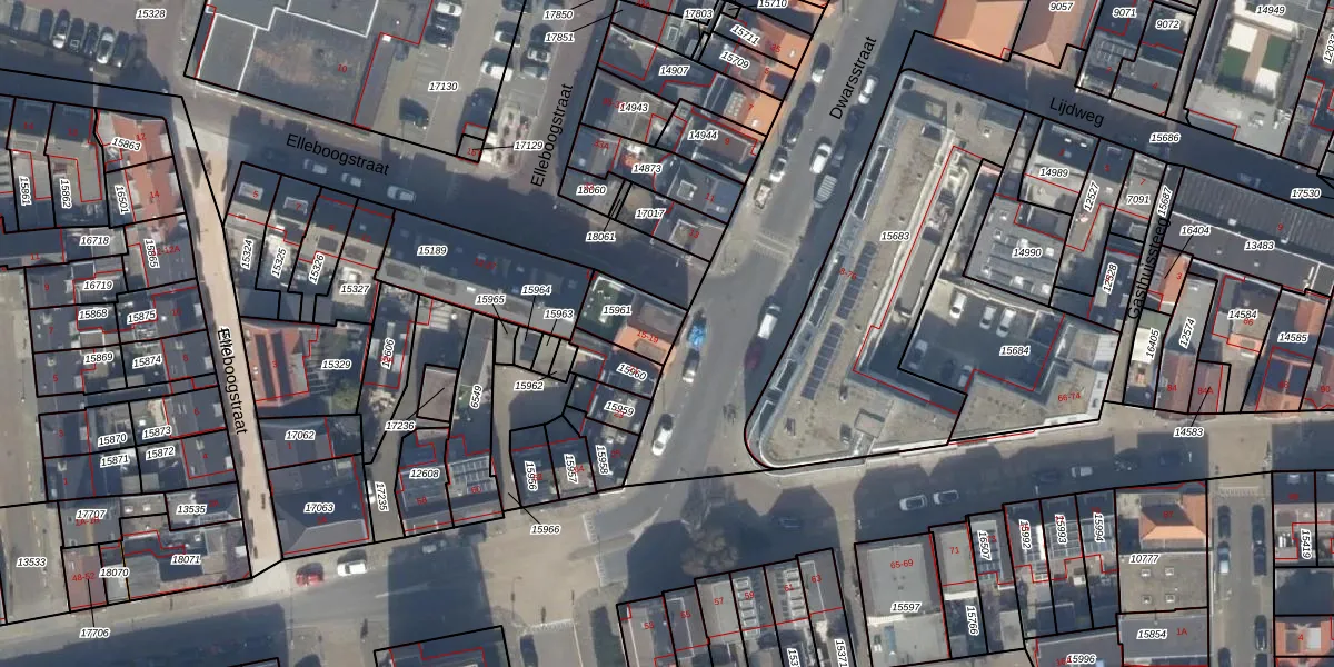 Dwarsstraat 19 is gelegen op kadastraal perceel KWK01A15961. Deze kadastrale aanduiding is uniek en wordt gebruikt door het Kadaster om eigendomsrechten en andere zakelijke rechten vast te leggen. Het perceel maakt onderdeel uit van de kadastrale gemeente Katwijk.