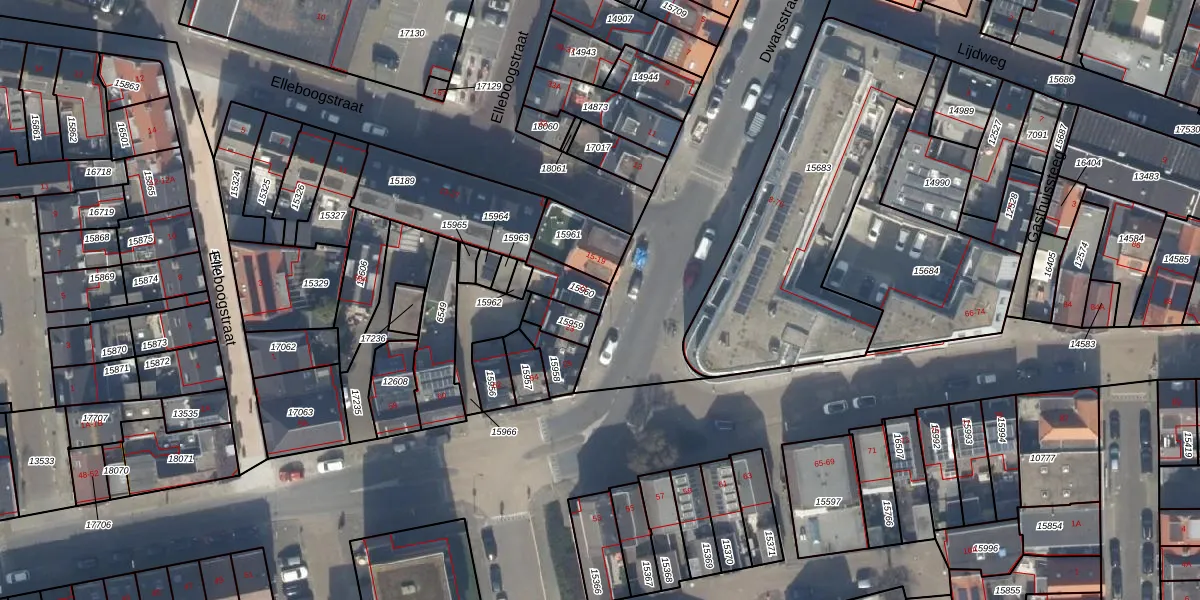 Het perceel waarop Dwarsstraat 21 staat heeft een oppervlakte van 82 m². Dit is een klein perceel. De perceeloppervlakte wordt geregistreerd door het Kadaster. Gedetailleerde informatie over de maten van dit perceel kunt u vinden in het rapport Kadastrale kaart met maatvoering van Dwarsstraat 21.