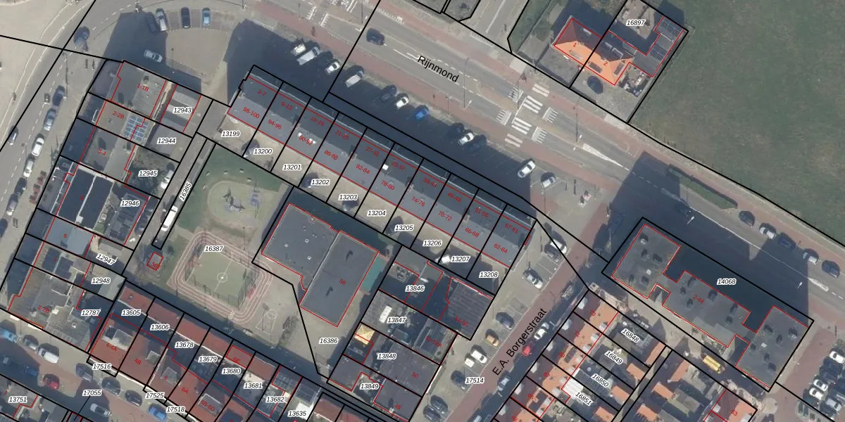 E.A. Borgerstraat 74 is gelegen op kadastraal perceel KWK01A13205. Deze kadastrale aanduiding is uniek en wordt gebruikt door het Kadaster om eigendomsrechten en andere zakelijke rechten vast te leggen. Het perceel maakt onderdeel uit van de kadastrale gemeente Katwijk.