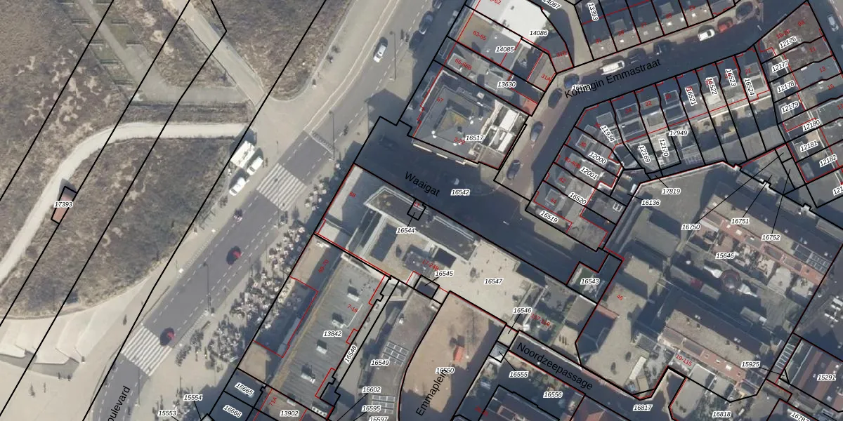 Emmaplein 21-B is gelegen op kadastraal perceel KWK01A16544. Deze kadastrale aanduiding is uniek en wordt gebruikt door het Kadaster om eigendomsrechten en andere zakelijke rechten vast te leggen. Het perceel maakt onderdeel uit van de kadastrale gemeente Katwijk.