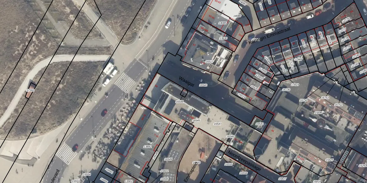 Emmaplein 22-B is gelegen op kadastraal perceel KWK01A16544. Deze kadastrale aanduiding is uniek en wordt gebruikt door het Kadaster om eigendomsrechten en andere zakelijke rechten vast te leggen. Het perceel maakt onderdeel uit van de kadastrale gemeente Katwijk.