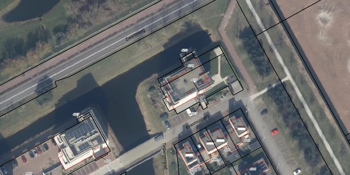 Erasmuslaan 21 is gelegen op kadastraal perceel KWK01C4216. Deze kadastrale aanduiding is uniek en wordt gebruikt door het Kadaster om eigendomsrechten en andere zakelijke rechten vast te leggen. Het perceel maakt onderdeel uit van de kadastrale gemeente Katwijk.