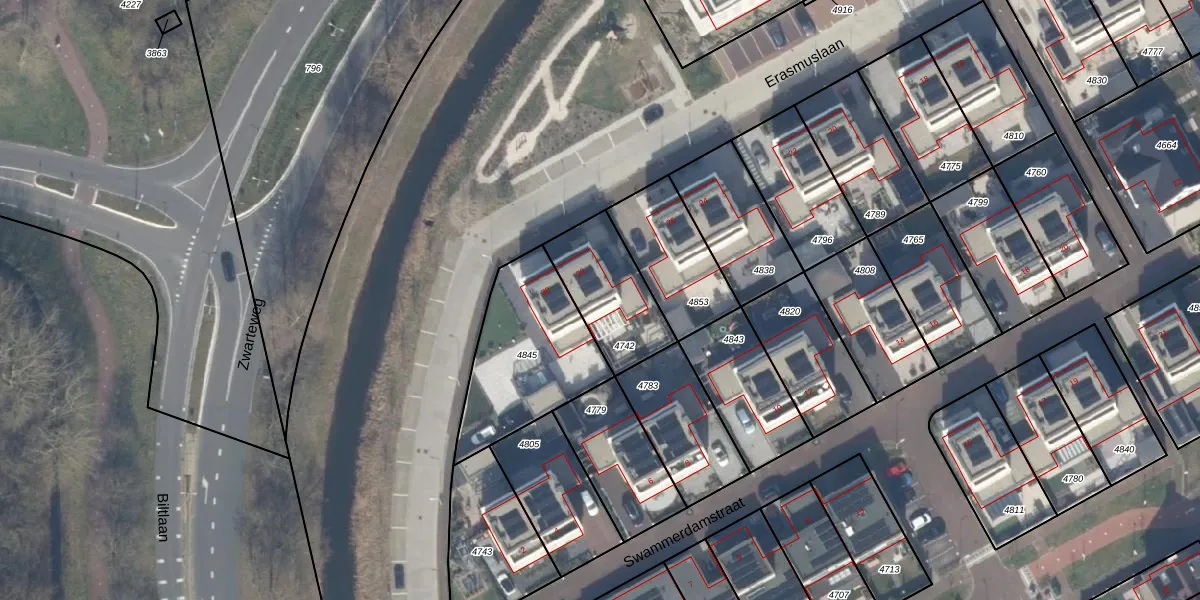 Het perceel waarop Erasmuslaan 28 staat heeft een oppervlakte van 301 m². Dit is een groot perceel. De perceeloppervlakte wordt geregistreerd door het Kadaster. Gedetailleerde informatie over de maten van dit perceel kunt u vinden in het rapport Kadastrale kaart met maatvoering van Erasmuslaan 28.
