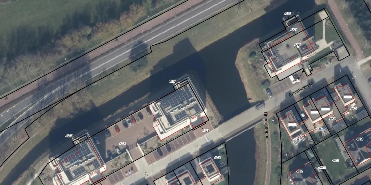 Het perceel waarop Erasmuslaan 43 staat heeft een oppervlakte van 2130 m². Dit is een zeer groot perceel. De perceeloppervlakte wordt geregistreerd door het Kadaster. Gedetailleerde informatie over de maten van dit perceel kunt u vinden in het rapport Kadastrale kaart met maatvoering van Erasmuslaan 43.