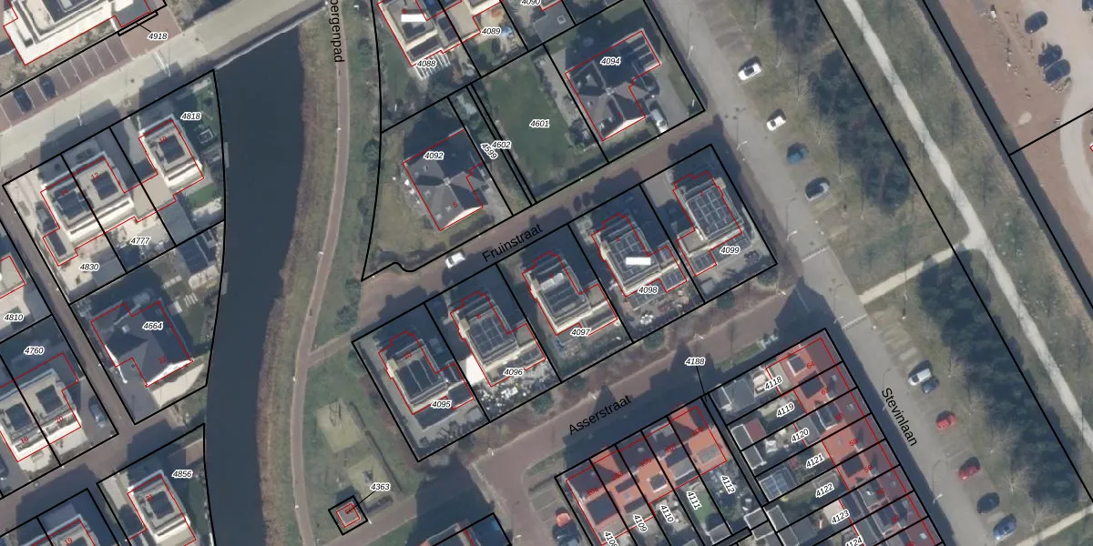 Gebruik de zoekbalk of klik op een perceel voor informatie over de adressen binnen dit perceel.