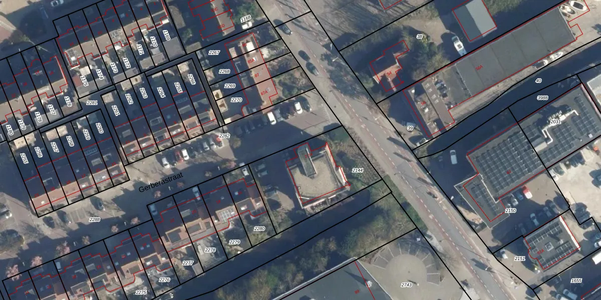 Het perceel waarop Gerberastraat 2 staat heeft een oppervlakte van 857 m². Dit is een groot perceel. De perceeloppervlakte wordt geregistreerd door het Kadaster. Gedetailleerde informatie over de maten van dit perceel kunt u vinden in het rapport Kadastrale kaart met maatvoering van Gerberastraat 2.