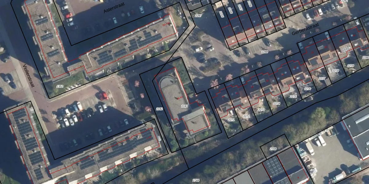 Het perceel waarop Gerberastraat 46 staat heeft een oppervlakte van 985 m². Dit is een groot perceel. De perceeloppervlakte wordt geregistreerd door het Kadaster. Gedetailleerde informatie over de maten van dit perceel kunt u vinden in het rapport Kadastrale kaart met maatvoering van Gerberastraat 46.