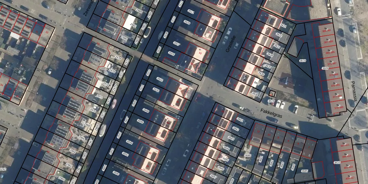 Gebruik de zoekbalk of klik op een perceel voor informatie over de adressen binnen dit perceel.