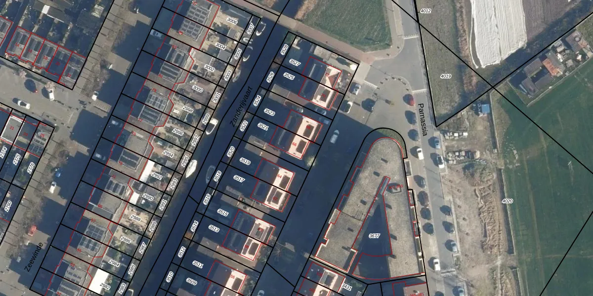 Gebruik de zoekbalk of klik op een perceel voor informatie over de adressen binnen dit perceel.