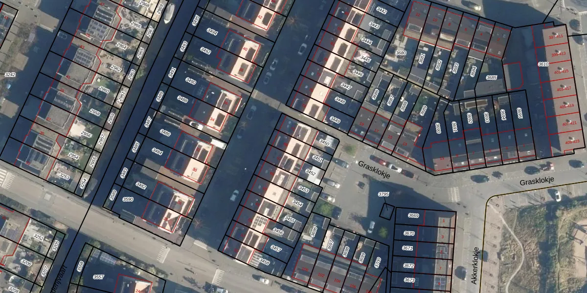Gebruik de zoekbalk of klik op een perceel voor informatie over de adressen binnen dit perceel.