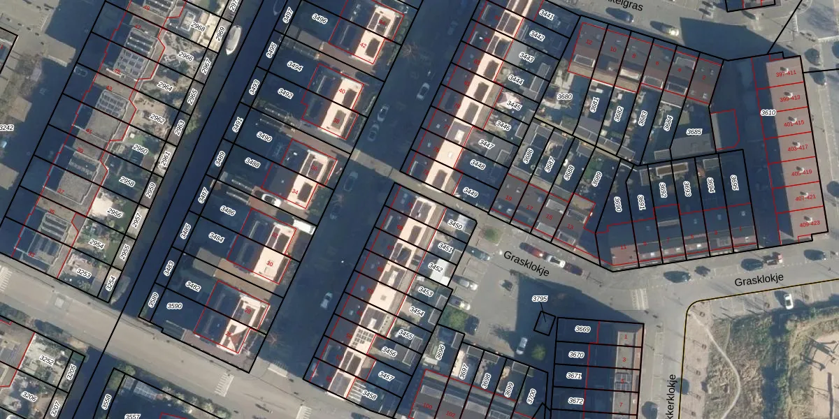 Gebruik de zoekbalk of klik op een perceel voor informatie over de adressen binnen dit perceel.