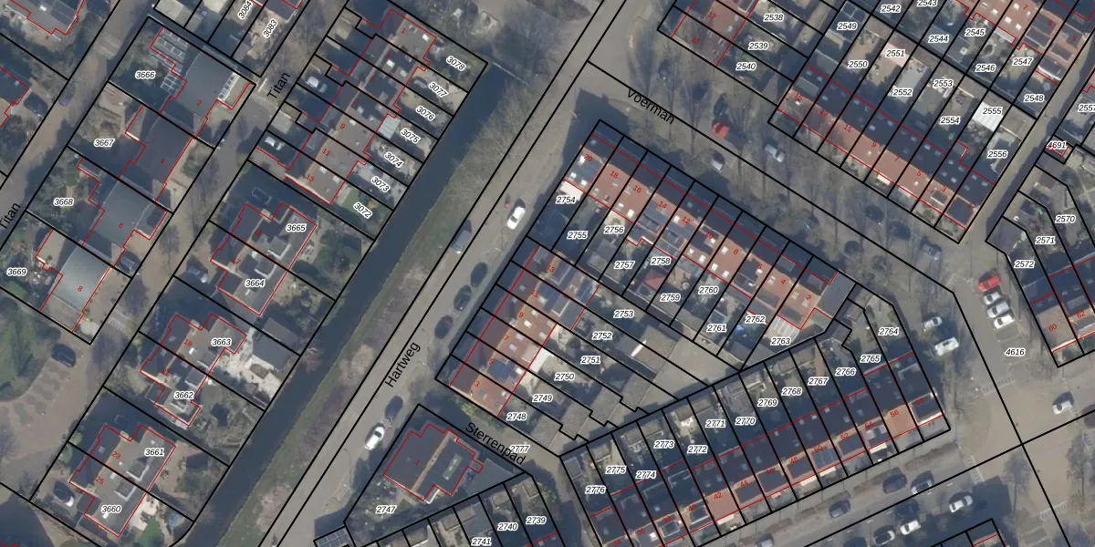 Gebruik de zoekbalk of klik op een perceel voor informatie over de adressen binnen dit perceel.
