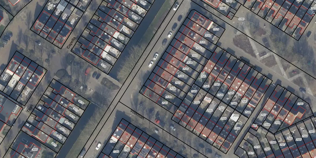 Gebruik de zoekbalk of klik op een perceel voor informatie over de adressen binnen dit perceel.