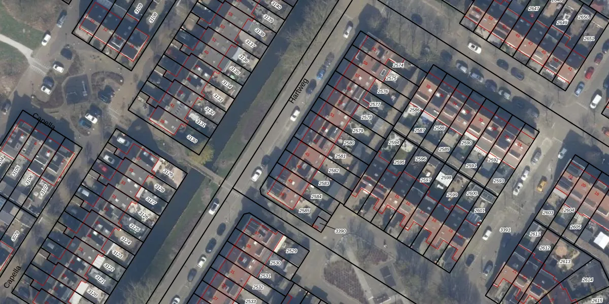 Gebruik de zoekbalk of klik op een perceel voor informatie over de adressen binnen dit perceel.