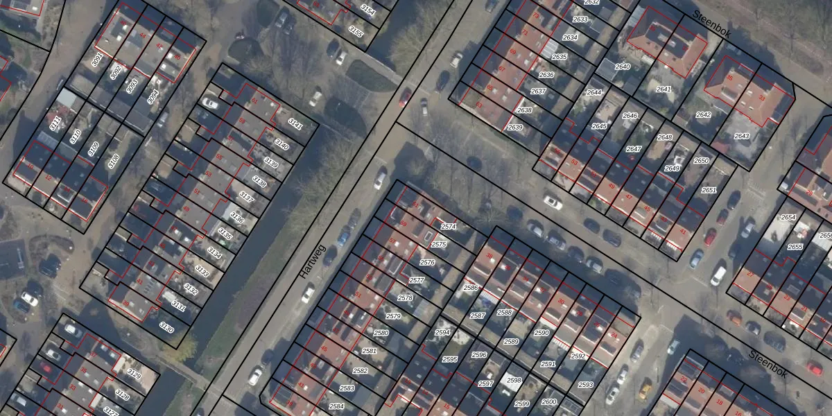 Gebruik de zoekbalk of klik op een perceel voor informatie over de adressen binnen dit perceel.