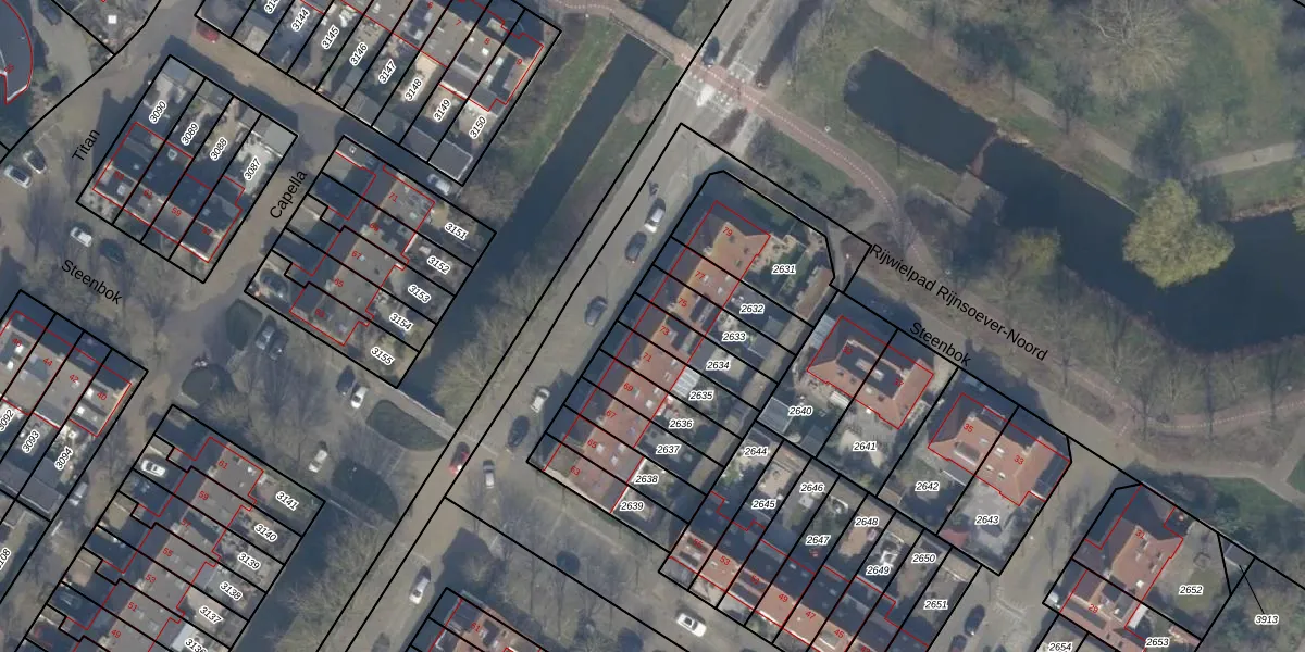 Gebruik de zoekbalk of klik op een perceel voor informatie over de adressen binnen dit perceel.