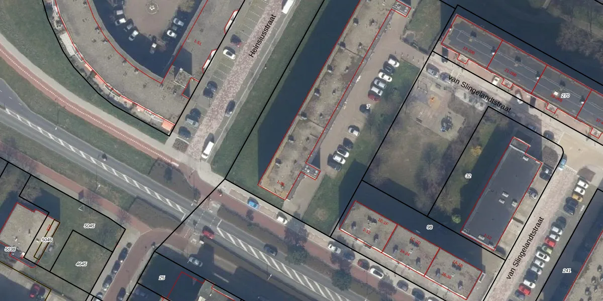 Het perceel waarop Heinsiusstraat 14 staat heeft een oppervlakte van 3413 m². Dit is een zeer groot perceel. De perceeloppervlakte wordt geregistreerd door het Kadaster. Gedetailleerde informatie over de maten van dit perceel kunt u vinden in het rapport Kadastrale kaart met maatvoering van Heinsiusstraat 14.