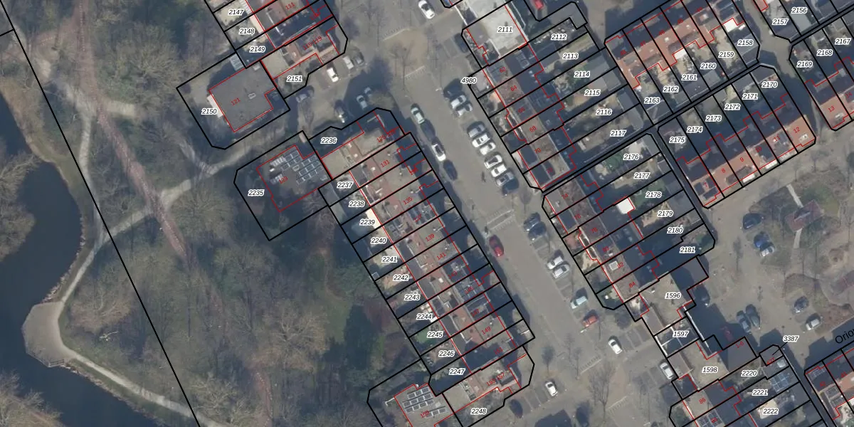 Gebruik de zoekbalk of klik op een perceel voor informatie over de adressen binnen dit perceel.