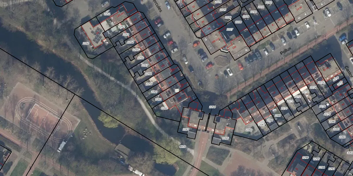 Gebruik de zoekbalk of klik op een perceel voor informatie over de adressen binnen dit perceel.