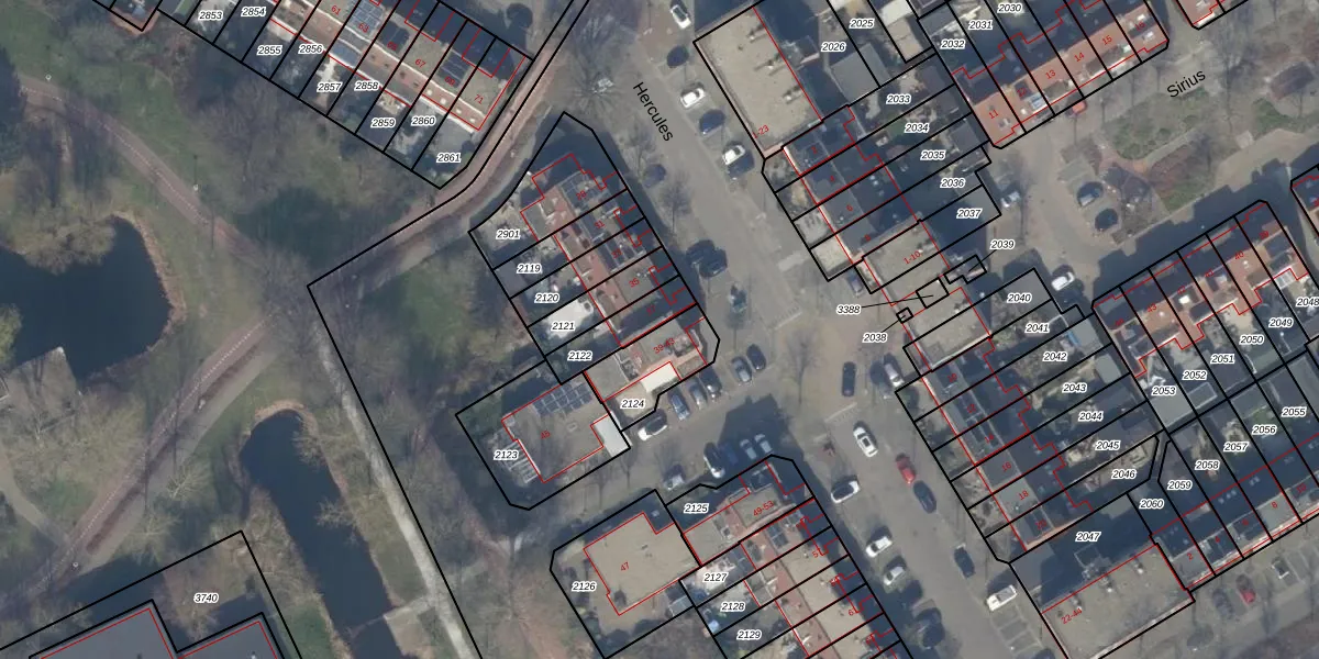 Het perceel waarop Hercules 39 staat heeft een oppervlakte van 186 m². Dit is een middelgroot perceel. De perceeloppervlakte wordt geregistreerd door het Kadaster. Gedetailleerde informatie over de maten van dit perceel kunt u vinden in het rapport Kadastrale kaart met maatvoering van Hercules 39.