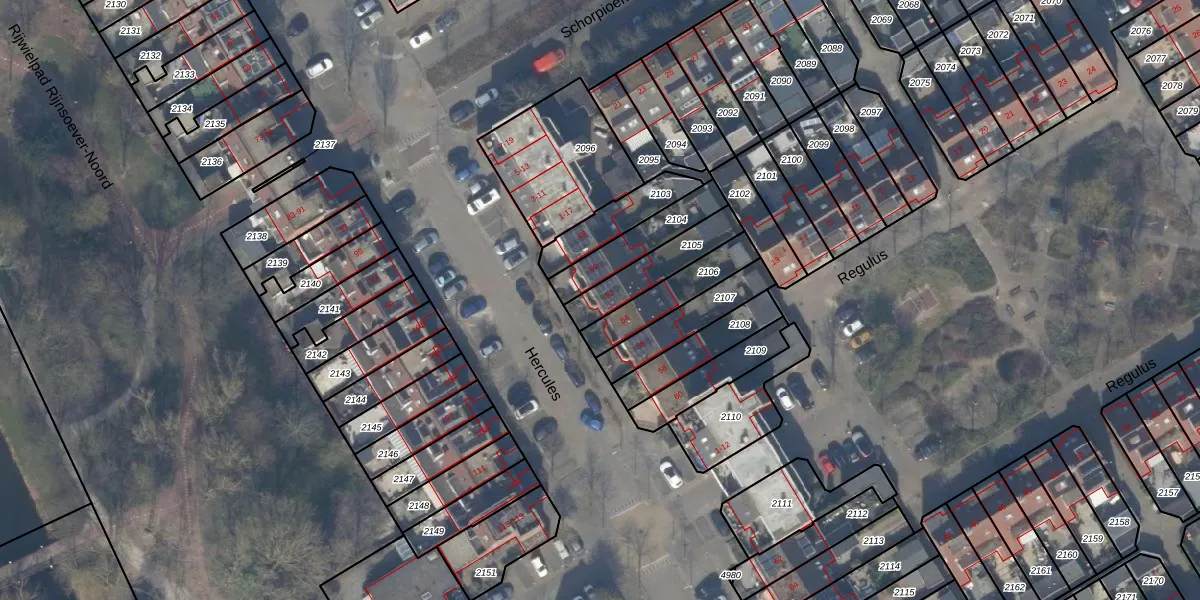 Gebruik de zoekbalk of klik op een perceel voor informatie over de adressen binnen dit perceel.