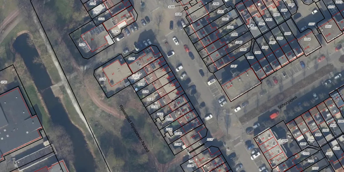 Gebruik de zoekbalk of klik op een perceel voor informatie over de adressen binnen dit perceel.