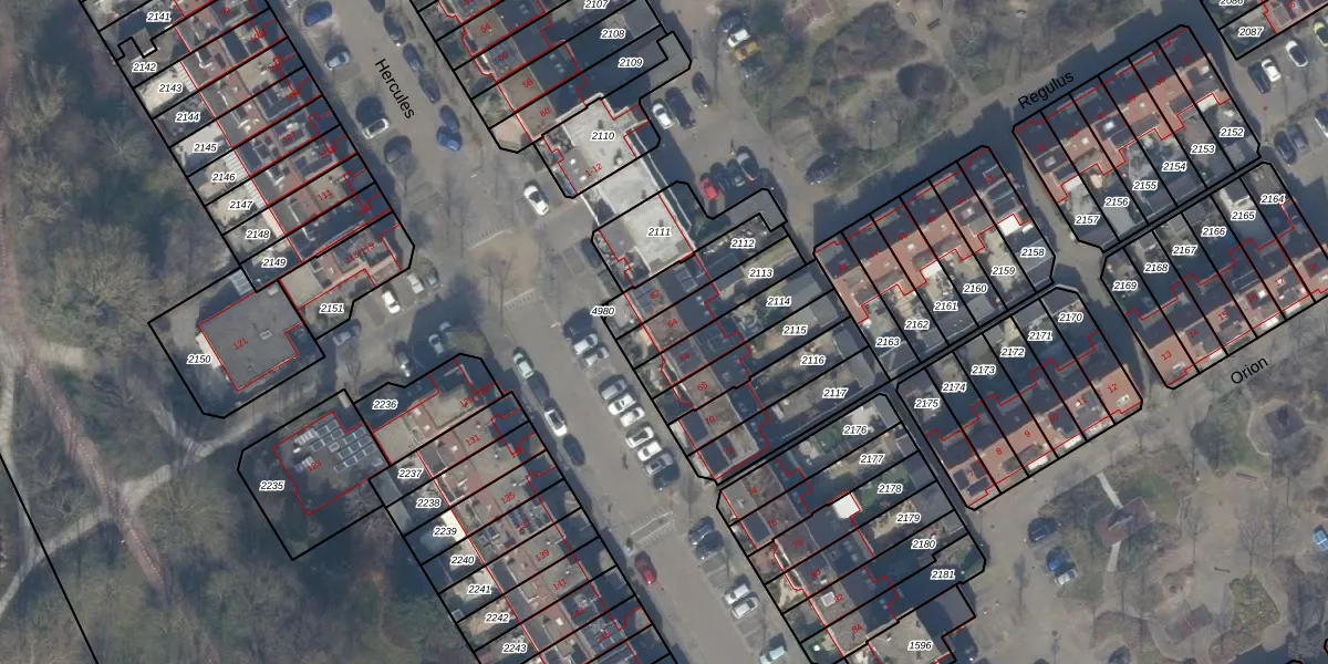 Gebruik de zoekbalk of klik op een perceel voor informatie over de adressen binnen dit perceel.