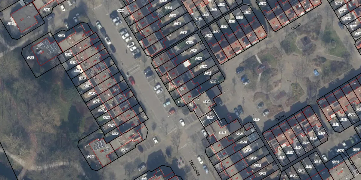 Gebruik de zoekbalk of klik op een perceel voor informatie over de adressen binnen dit perceel.