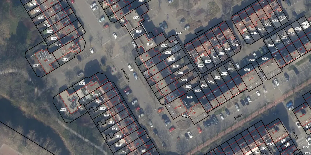 Gebruik de zoekbalk of klik op een perceel voor informatie over de adressen binnen dit perceel.