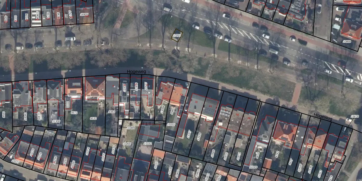 Het perceel waarop Hogeweg 14 staat heeft een oppervlakte van 300 m². Dit is een groot perceel. De perceeloppervlakte wordt geregistreerd door het Kadaster. Gedetailleerde informatie over de maten van dit perceel kunt u vinden in het rapport Kadastrale kaart met maatvoering van Hogeweg 14.