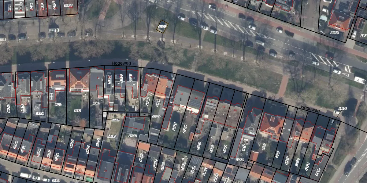 Het perceel waarop Hogeweg 15 staat heeft een oppervlakte van 407 m². Dit is een groot perceel. De perceeloppervlakte wordt geregistreerd door het Kadaster. Gedetailleerde informatie over de maten van dit perceel kunt u vinden in het rapport Kadastrale kaart met maatvoering van Hogeweg 15.