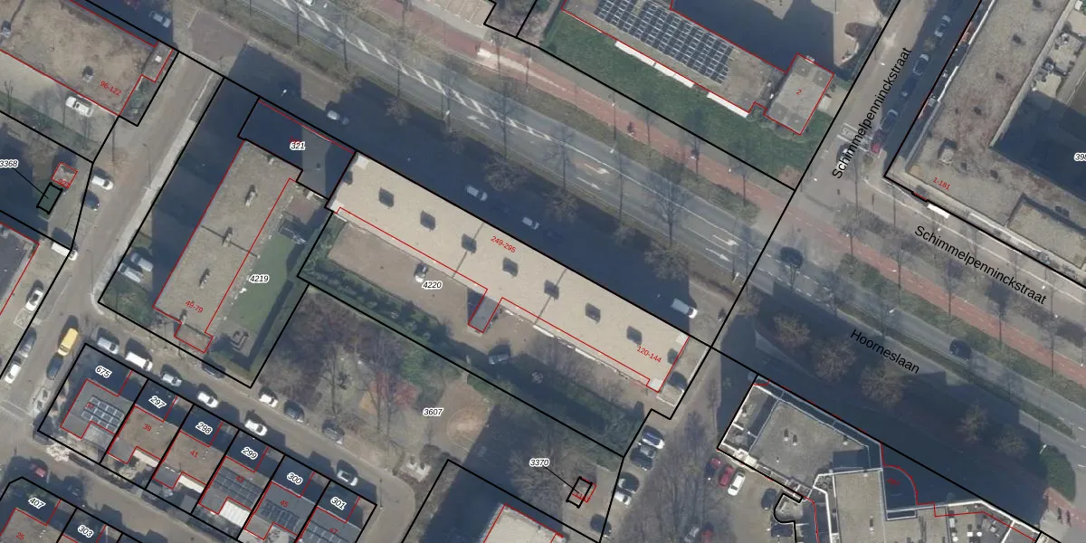 Hoorneslaan 257 is gelegen op kadastraal perceel KWK01C4220. Deze kadastrale aanduiding is uniek en wordt gebruikt door het Kadaster om eigendomsrechten en andere zakelijke rechten vast te leggen. Het perceel maakt onderdeel uit van de kadastrale gemeente Katwijk.