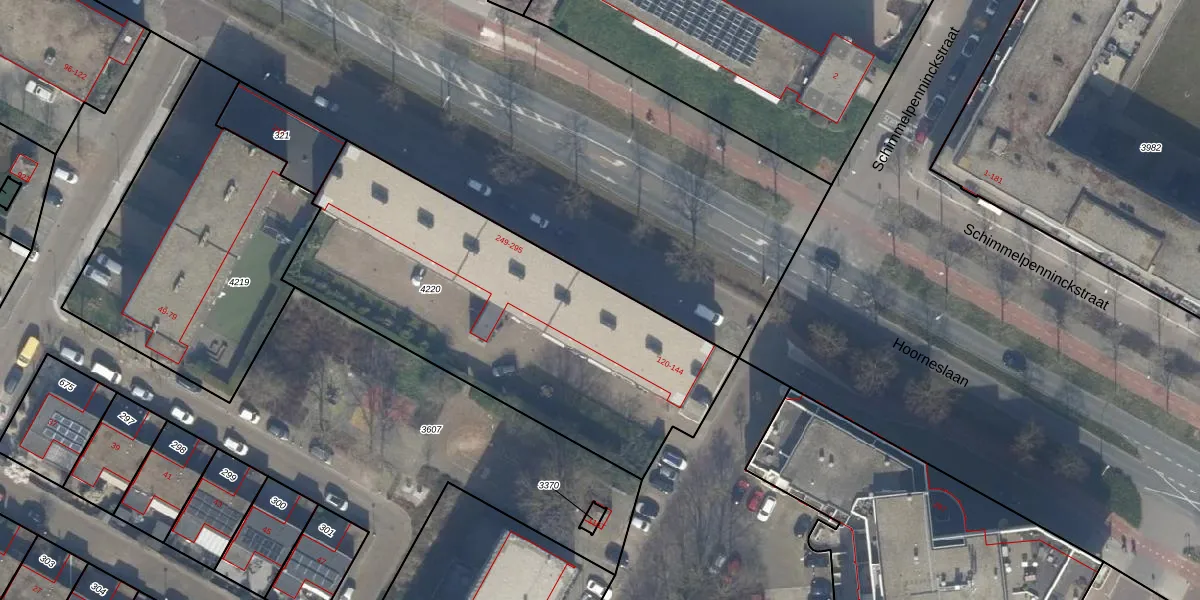 Hoorneslaan 259 is gelegen op kadastraal perceel KWK01C4220. Deze kadastrale aanduiding is uniek en wordt gebruikt door het Kadaster om eigendomsrechten en andere zakelijke rechten vast te leggen. Het perceel maakt onderdeel uit van de kadastrale gemeente Katwijk.
