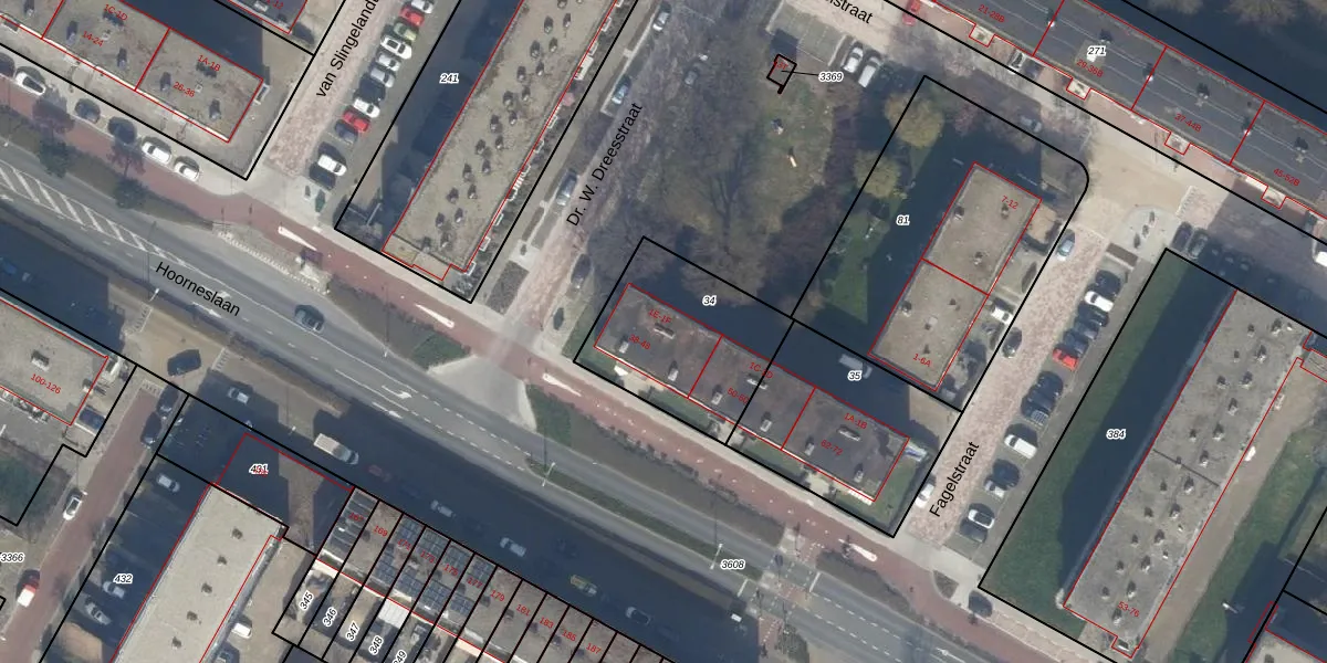 Het perceel waarop Hoorneslaan 46 staat heeft een oppervlakte van 560 m². Dit is een groot perceel. De perceeloppervlakte wordt geregistreerd door het Kadaster. Gedetailleerde informatie over de maten van dit perceel kunt u vinden in het rapport Kadastrale kaart met maatvoering van Hoorneslaan 46.