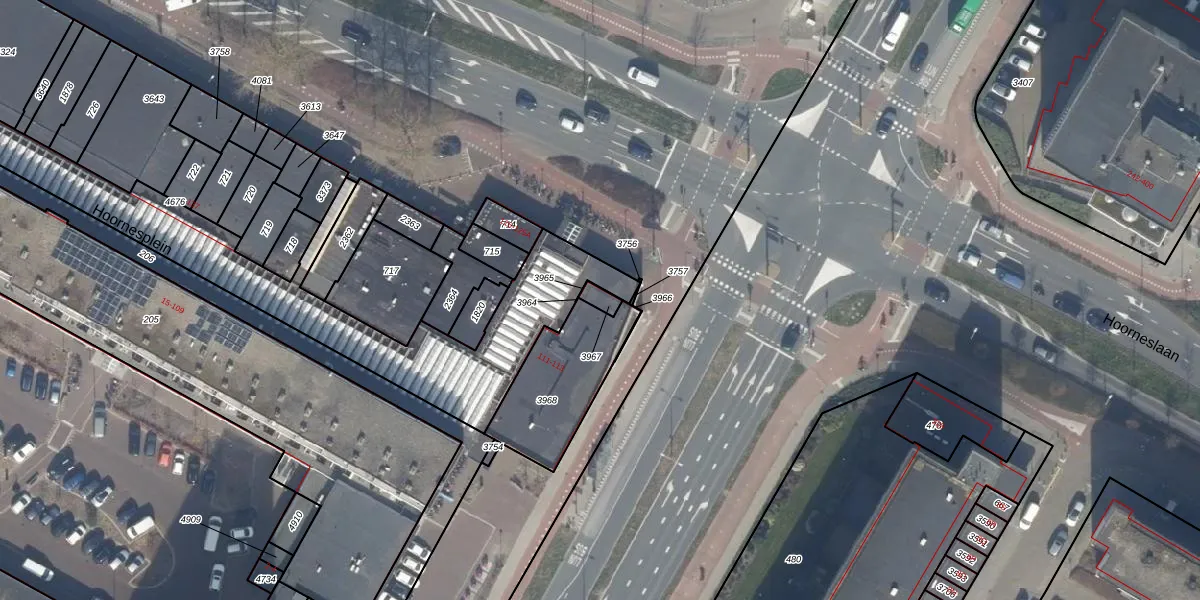 Het perceel waarop Hoornesplein 113 staat heeft een oppervlakte van 21 m². Dit is een klein perceel. De perceeloppervlakte wordt geregistreerd door het Kadaster. Gedetailleerde informatie over de maten van dit perceel kunt u vinden in het rapport Kadastrale kaart met maatvoering van Hoornesplein 113.