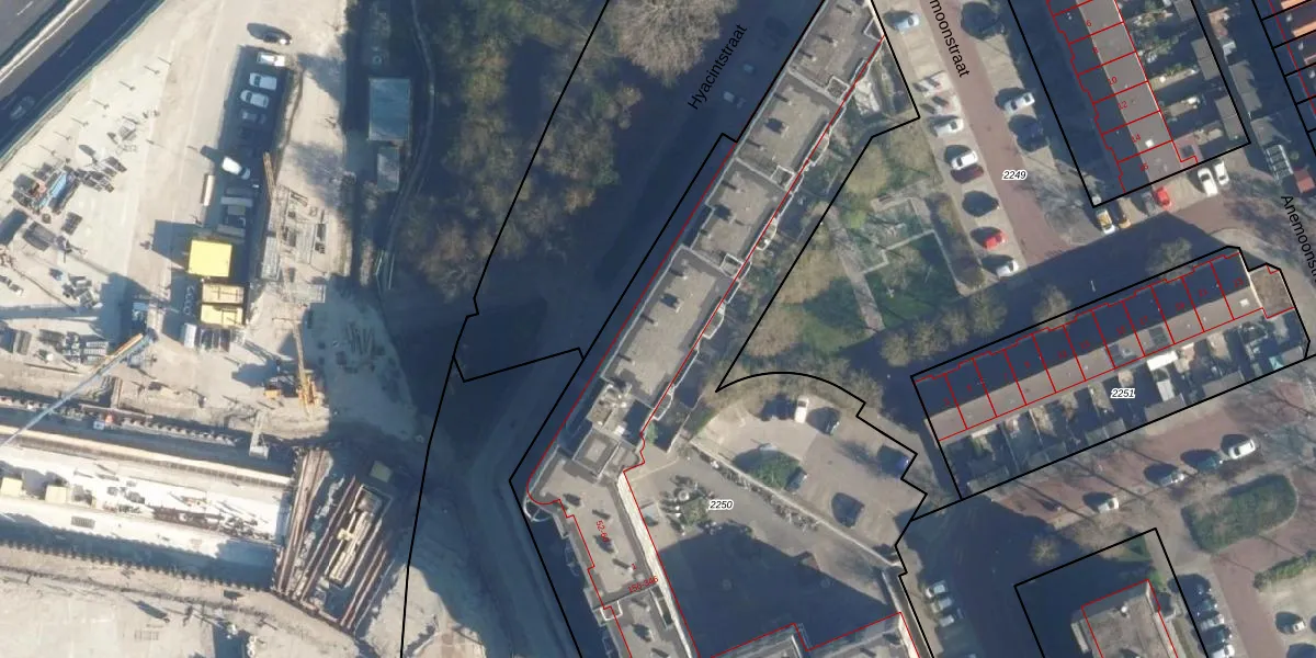 Het perceel waarop Hyacintstraat 55 staat heeft een oppervlakte van 4326 m². Dit is een zeer groot perceel. De perceeloppervlakte wordt geregistreerd door het Kadaster. Gedetailleerde informatie over de maten van dit perceel kunt u vinden in het rapport Kadastrale kaart met maatvoering van Hyacintstraat 55.