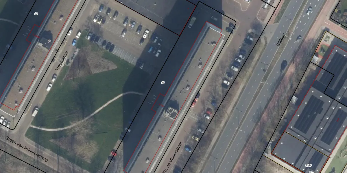 Het perceel waarop J. Th. de Visserstraat 37 staat heeft een oppervlakte van 2936 m². Dit is een zeer groot perceel. De perceeloppervlakte wordt geregistreerd door het Kadaster. Gedetailleerde informatie over de maten van dit perceel kunt u vinden in het rapport Kadastrale kaart met maatvoering van J. Th. de Visserstraat 37.